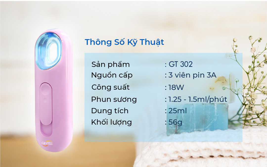 - Sức chưa nước 25ml, đơn giản dễ sử dụng G-Nano tạo ra lớp sương nhẹ, mịn thẩm thấu sau từ ngoài vào các lớp biểu bì da bên trong. Giúp da hấp thụ tốt hơn và dưỡng ẩm sau cho làn da luôn căng mịn. THỐNG SỐ KỸ THUẬT