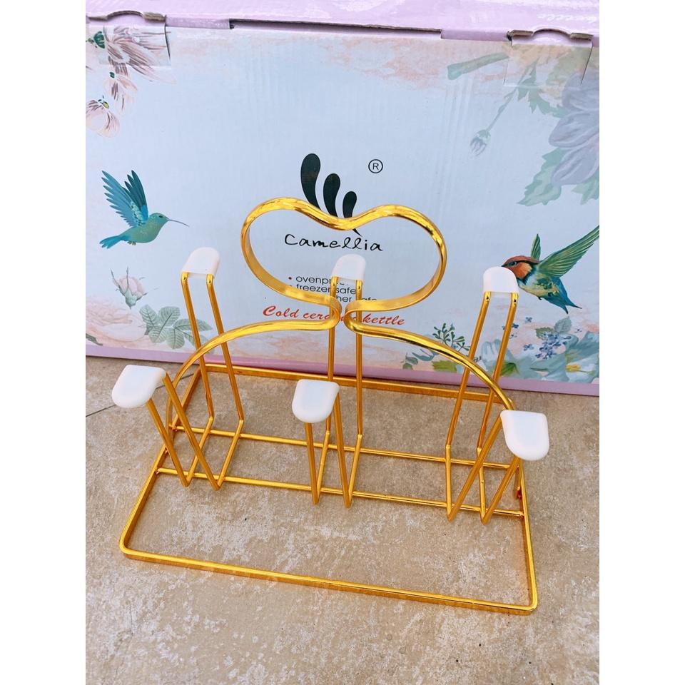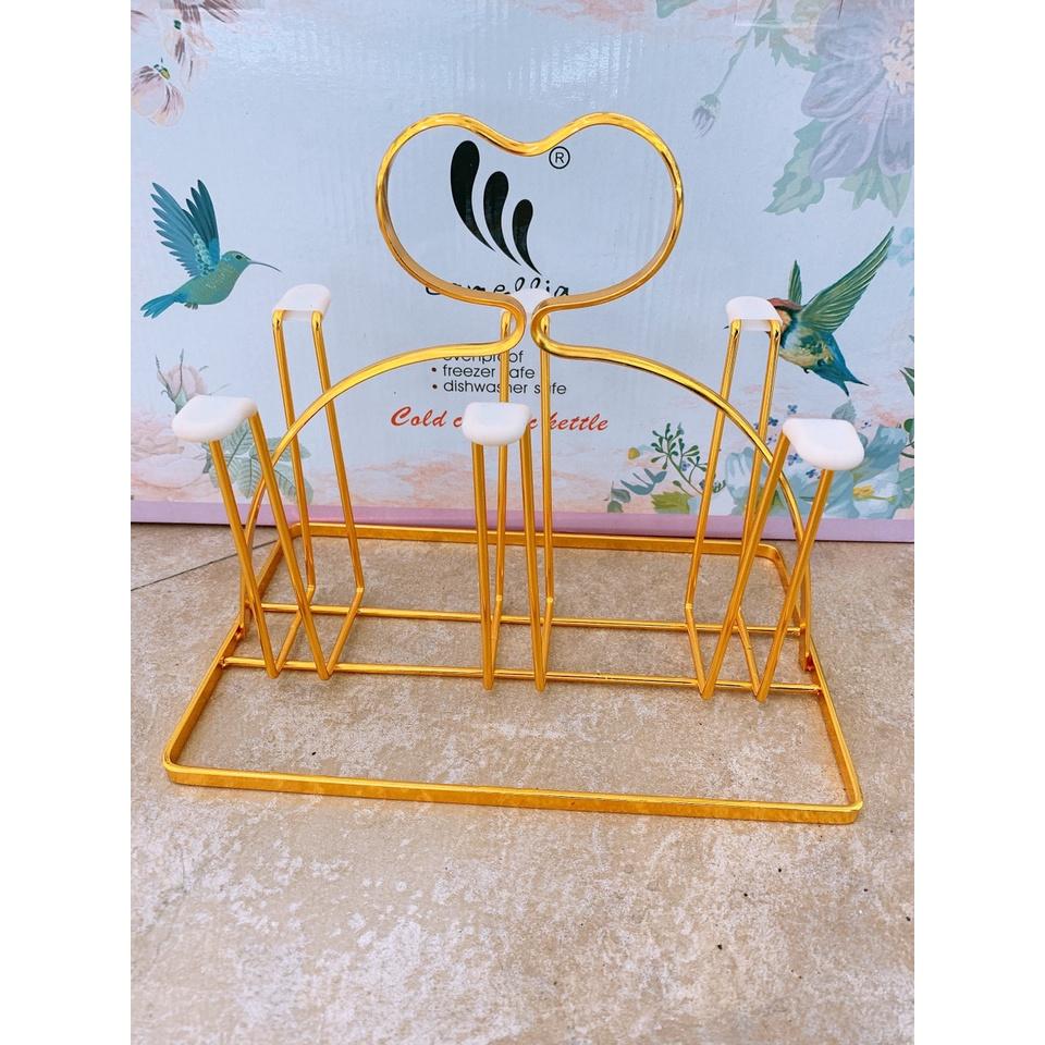 Giá cắm 6 chiếc cốc dạng gọn (CL95965) Giá có khay hứng nước Chất liệu sắt sơn tĩnh điện cao cấp màu vàng cực sang chảnh Dễ vệ sinh, không bị hoen rỉ Kiểu dáng