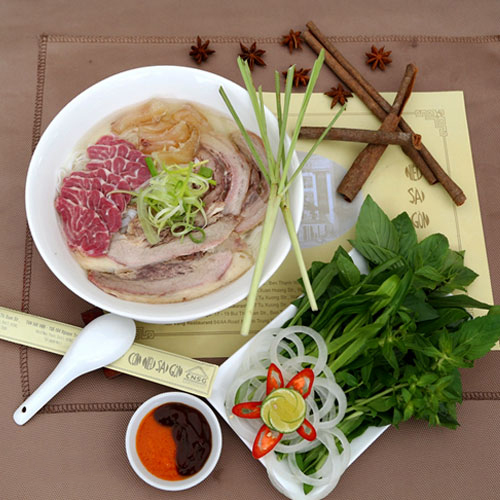 Món phở Việt Nam là món ngon truyền thống ăn kèm rau thơm, húng quế được phục vụ vào buổi sáng. Thưởng thức một tô Phở Bò có thịt chay Ông Chà Và nóng là