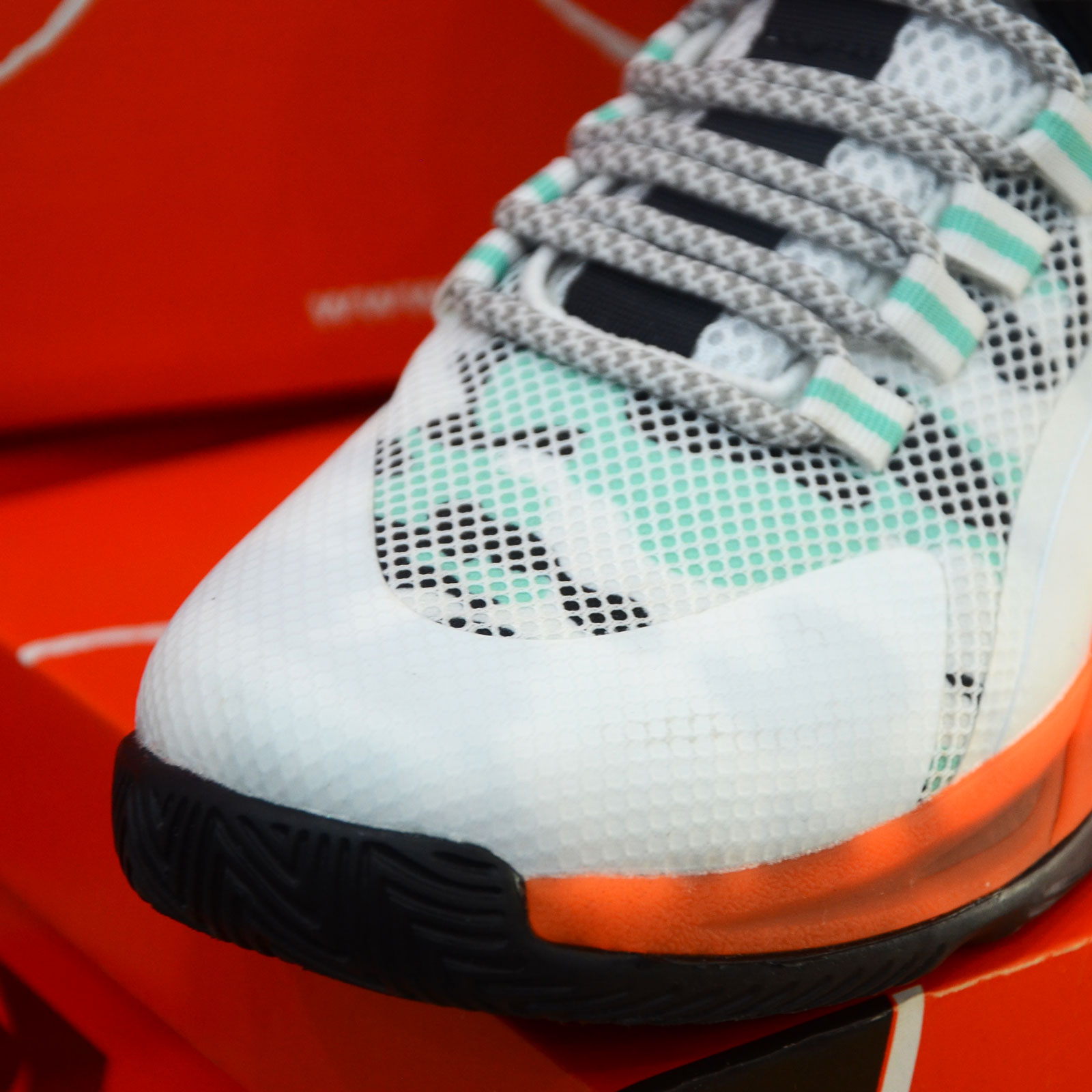 Đế giày được làm từ cao su tự nhiên có tính đàn hồi tốt và chống mài mòn một cách mạnh mẽ. Với đặc thù bộ môn Bóng rổ đòi hỏi vận động nhảy và chạy nhiều, khuôn đế được thiết kế để chống lật cổ chân, an toàn cho trẻ em khi tham gia tập luyện và thi đấu.