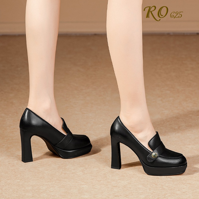 Giày cao gót nữ đẹp đế vuông 9 phân hàng hiệu rosata màu đen da ro377