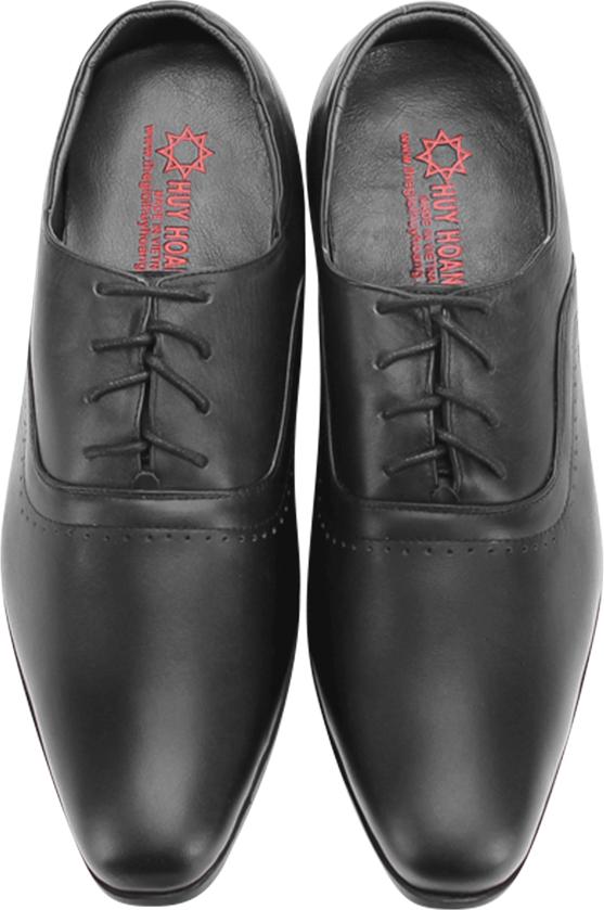 Giày nam Huy Hoàng da bò cột dây mũi tròn màu đen 7711