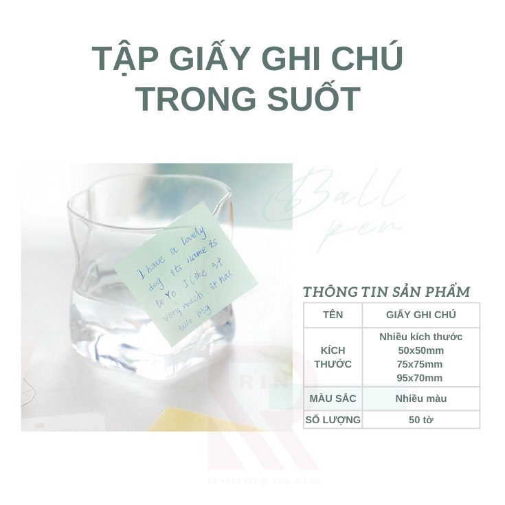 ✨Giấy note trong suốt / giấy ghi nhớ / Giấy ghi chú giấy nhắn TRONG SUỐT cho học sinh, văn phòng - nhiều màu/mẫu