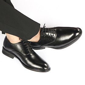 Minh Nhân - Giày Tây Nam da bò Oxford Shoes Giày buộc dây Công sở Doanh nhân da bò Cao Cấp B-10 ĐEN