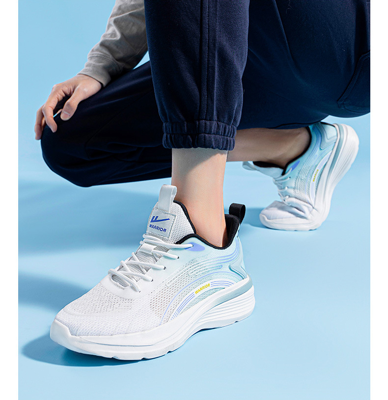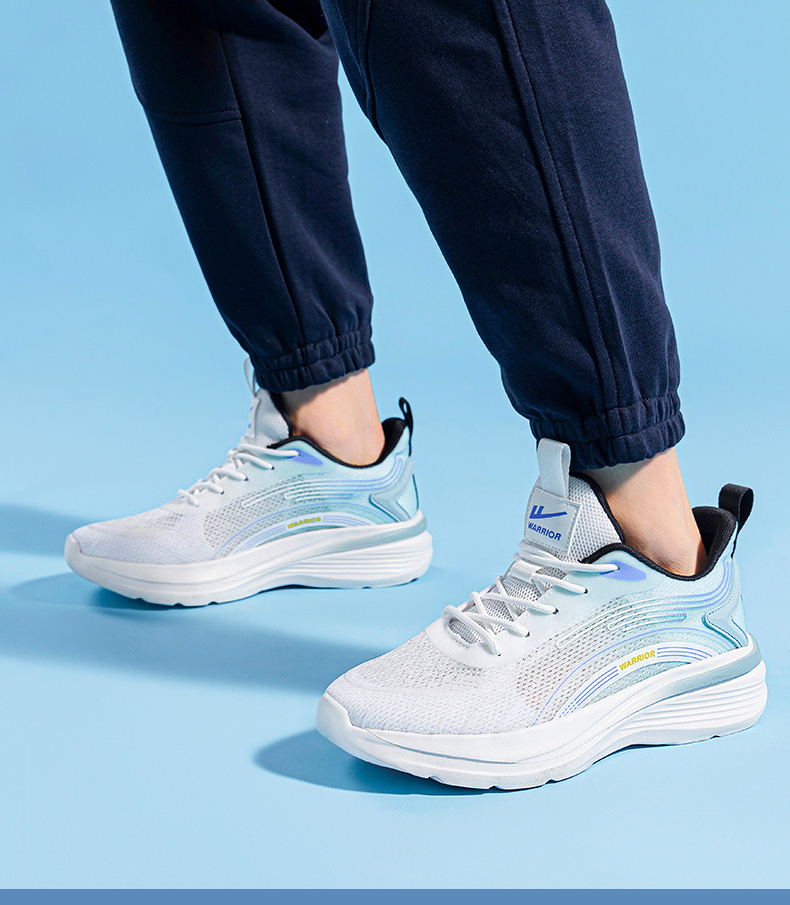 Đế giày - lựa chọn chất liệu Phylon làm nên đế giày thể thao cho các chị em. Vì tính chất nổi bật của vật liệu này là trọng lượng siêu nhẹ (nặng chỉ 300g/chiếc) và độ đàn hồi cao. Nhờ đó, phần lớn khách hàng sử dụng sản phẩm ngay từ lần đầu tiên đều có cảm giác đôi chân “nhẹ như bay”, bước đi thoải mái và thỏa thích vận động ở mọi tư thế theo cách riêng mà không lo đau mỏi chân. - Mặt đế thiết kế thêm những rãnh chống trượt, bố trí dày đặc nhằm tăng độ ma sát. Qua đó giúp người mang vận động thoải mái, bước đi vững chắc và bảo đảm an toàn tối đa, nhất là khi di chuyển trên những địa hình trơn nhẵn hoặc thời tiết ẩm ướt. Thân giày - Thân giày áp dụng công nghệ đan 2 sợi độc đáo. Nhờ vậy, sản phẩm vô cùng nhẹ và thoáng, mang lại cảm giác thoải mái nhất có thể cho người sử dụng. Không những vậy, công nghệ đan 2 sợi còn bảo đảm độ bền chặt của từng chi tiết như cổ giày, quai giày, dây giày… giữ đúng form dáng lâu dài, ít biến dạng hoặc giãn sau một thời gian sử dụng. - Bên cạnh đó, thiết kế thân giày được cải tiến mạnh mẽ bằng chất liệu vải canva, bảo đảm cảm giác thoải mái nhất có thể và hạn chế nóng bức, bí bách nếu phải mang giày trong thời gian dài. -
