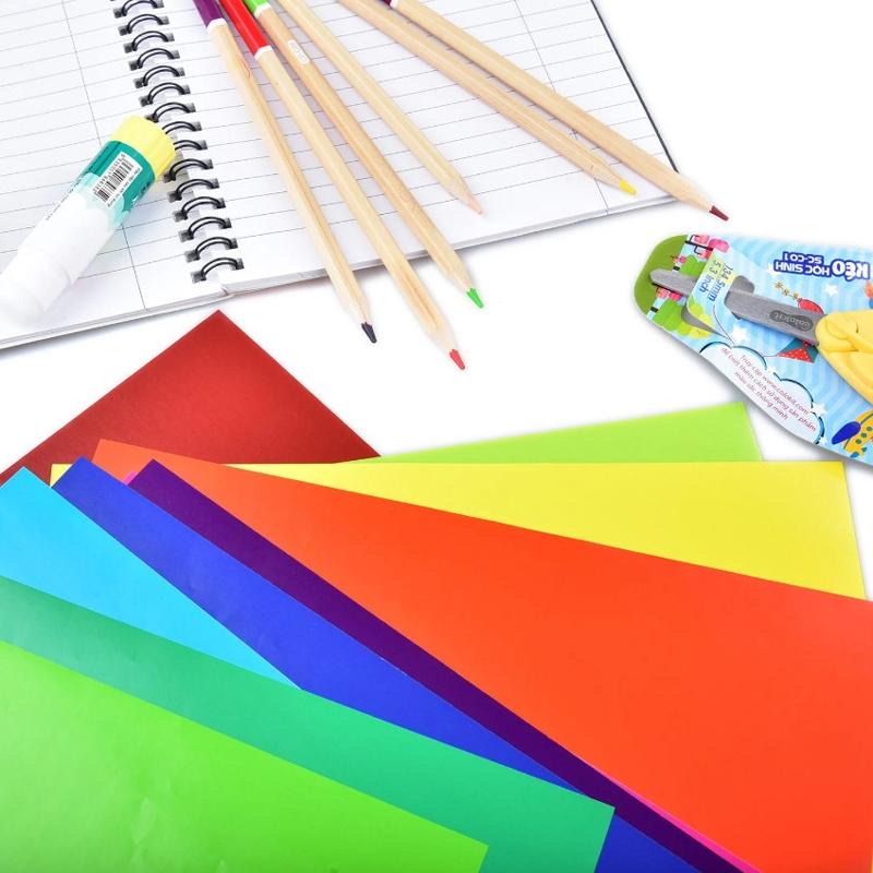 Giấy Thủ Công Không Keo Lớn (17 x 22 cm) Giấy thủ công có bề mặt bóng, mịn màu sắc sinh động gồm 8 màu chủ đạo: đỏ, vàng, hồng, tím, xanh lá, cam, xanh