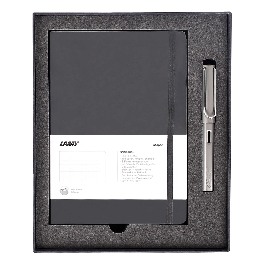 - Gift Set Lamy Notebook A6 Softcover Grey + Lamy Al-Star Grey - GSA6-Al009 là một phương tiện tuyệt vời cho những người muốn lưu giữ các ghi chú cá nhân dưới dạng chữ viết