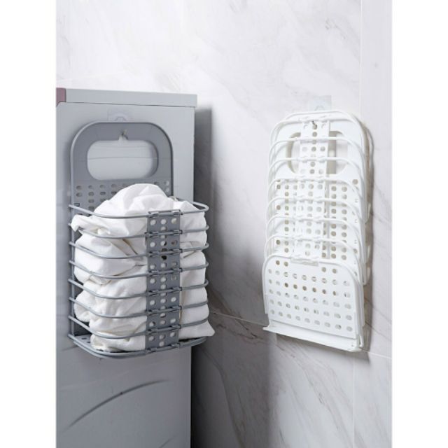 giỏ đựng quần áo Sản phẩm : giỏ đựng quần áo treo tường Chất liệu : Nhựa dẻo Màu sắc : trắng, xám (giao màu ngẫu nhiên) Ưu điểm- Có thể gấp gọn , gắn tường tiện