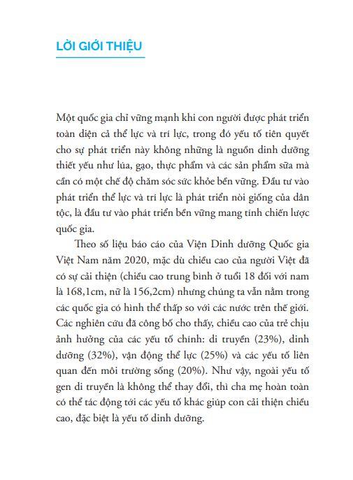 Hi vọng với những thông tin có trong sách này, cha mẹ và con cái có thể cùng nhau nỗ lực để trẻ cao lớn hơn, hạnh phúc hơn.