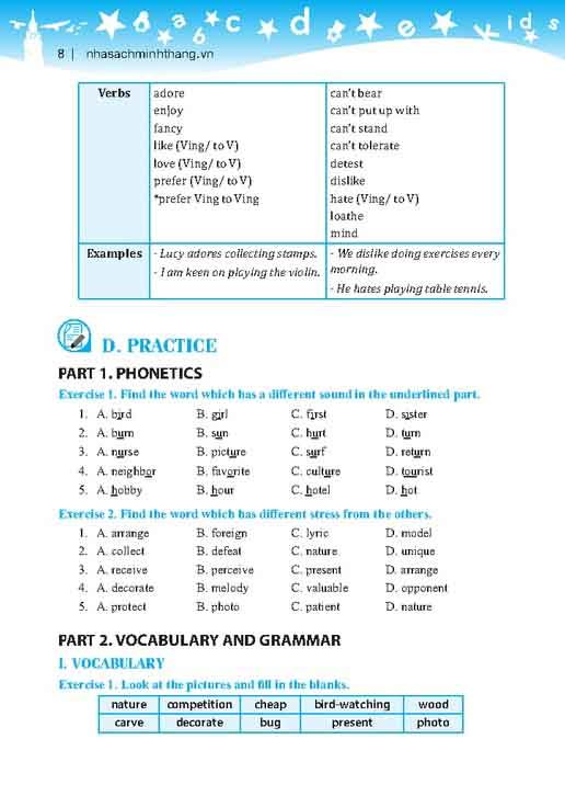 Với mong muốn giúp các em học sinh đầu cấp củng cố và mở rộng kiến thức ngôn ngữ trong chương trình tiếng anh lớp 7 . Các dạng bài tập phong phú , đa dạng, bám sát ngữ pháp và từ vựng theo chủ đề từng đơn vị bài tập .