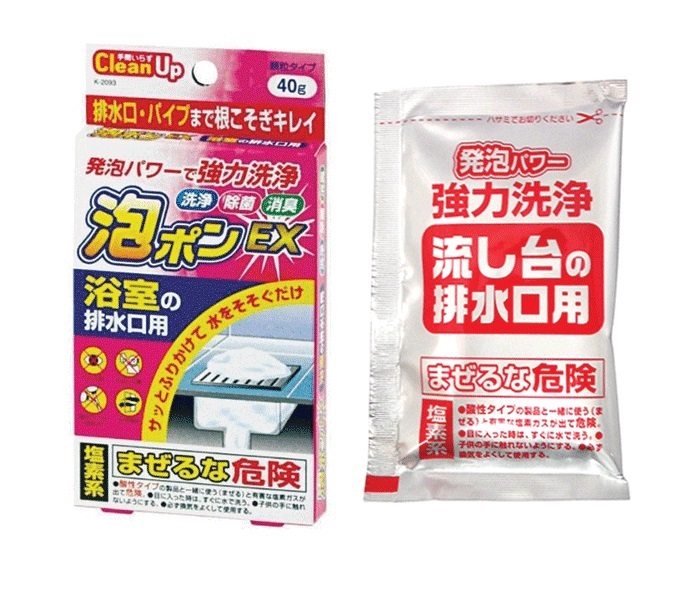 Gói bột tẩy rửa thông tắc đường ống vệ sinh đa năng - Nội địa Nhật : -Thành phần: Dichloroisocyanurate, Perborates, Natriaxit, chất hoạt động bề mặt, phụ gia... -Công dụng : -