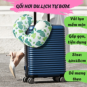 Gối hơi chữ U Minosuke - ấn bơm hơi ngay trên gối dùng đi du lịch , ô tô, máy bay