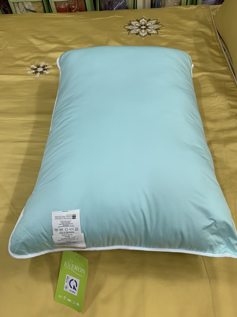 - Ruột gối Everon được đảm bảo tuyệt đối về an toàn sức khỏe nhờ chất liệu gòn tự nhiên đạt tiêu chuẩn kiểm định trước khi đưa vào sản xuất, không gây kích ứng da đối với các vùng tiếp xúc trực tiếp với gối như: cổ, đầu, da mặt.