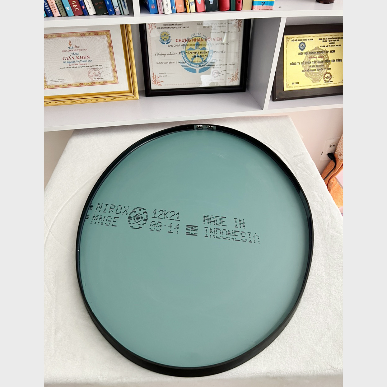 THÔNG TIN SẢN PHẨM - Kích thước: Đường Kính D80cm (kích thước bao gồm khung) - Chất Liệu: Phôi gương nhập khẩu từ tập đoàn AGC (Bỉ) nhà máy sản xuất tại Indonesia dày 5ly.