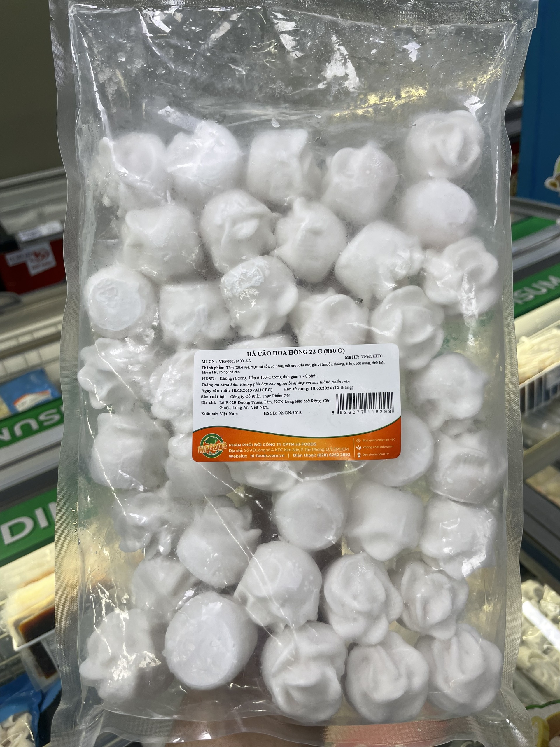 Mua tại TiktokVới sản phẩm tươi sống, trọng lượng thực tế có thể chênh lệch khoảng 10%. ĐỊNH LƯỢNG: 22g/cái x 40 cái/gói (1 gói 880gr ) THÀNH PHẦN: Vỏ bột há cảo, tôm, mực, cá hồi, củ năng, mỡ heo, gia vị MÔ TẢ SẢN PHẨM: - Vỏ áo ngoài màu trắng trong - Bánh được định hình hình hoa hồng, vỏ bánh mỏng, mềm mịn dẻo dai với phần nhân từ tôm, mực, cá hồi và củ năng xay nhuyễn mang đến vị ngọt tự nhiên CÁCH CHẾ BIẾN: - Không rã đông - Hấp 100°C, 6-7 phút - Microwave ở chế độ hấp: 3-4 phút BẢO QUẢN: - Bảo quản nhiệt độ -15°c đến -18°c hoặc trong ngăn đá tủ lạnh - Không đông lại sau khi đã rã đông HSD: 12 tháng