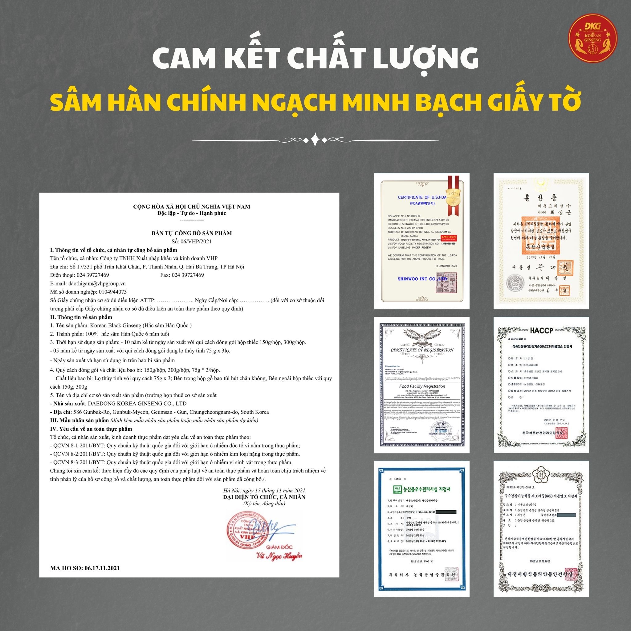 - Thành phần: 100% hắc sâm Hàn Quốc 6 năm tuổi.