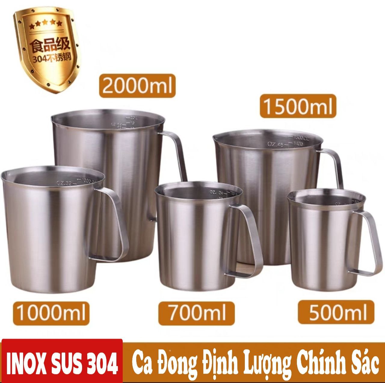 Ca Inox Định Lượng 304, Ca Đong Inox Có Vạch Chia Dung Tích 500ml/700ml/1L/1.5L/2L