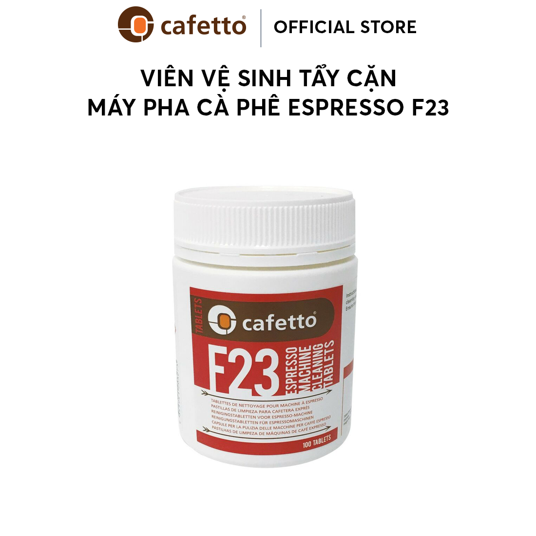 Viên vệ sinh tẩy cặn máy pha cà phê espresso tự động Cafetto F23 (100 Viên) - Loại bỏ hoàn toàn và an toàn dầu cà phê cũng như cặn của các máy pha cà