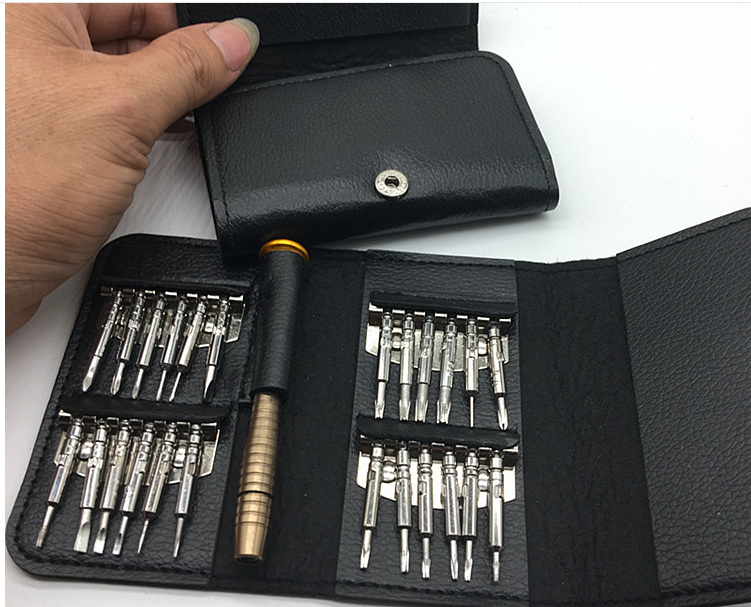 Với bộ tua vít 25 in 1 này đảm bảo bạn sẽ không còn phải lo lắng sửa chữa đồ điện tử khi gặp phải những con ốc, vít siêu nhỏ. Bộ tô vít ví da25in1mang lại cho bạn nhiều tiện lợi khi sửa chữa máy móc hay các thiết bị điện tử cỡ nhỏ trong gia đình. Bộ tua vít với đầu tua vít được làm từ chất liệu thép không gỉ nên rất bền chắc. Sản phẩm có nhiều kiểu đầu vít khác nhau như: đầu dẹt, tam giác, lục giác, 3 cạnh, 4 cạnh, 5 cạnh và 6 cạnh, mỗi dạng đều có đủ các cỡ từ lớn đến nhỏ nên rất dễ dàng cho bạn trong việc sửa chữa đồ đạc.
