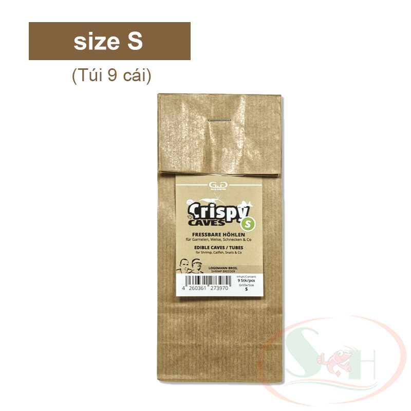 Hang thức ăn GlasGarten Crispy Caves là sản phẩm mới từ thương hiệu GlasGarten được làm từ 100% nguyên liệu tự nhiên, chứa nhiều dinh dưỡng, chất xơ quan trọng và thúc đẩy sự phát triển của màng sinh học (biofilm) trên bề mặt làm thức ăn sạch cho cá tép. GlasGarten Crispy Caves với bề ngoài giống gỗ hoặc vỏ cây giúp trang trí một cách tự nhiên trong bể cá tép. Các động vật nhỏ hơn có thể vào trong hang và kiếm ăn một cách an toàn hơn. Glasgarten Crispy Caves là nguồn thức ăn dặn bổ sung hoàn hảo cho việc cho ăn thường xuyên bằng thức ăn chính, chúng không gây ô nhiễm nước và có thể để trong bể cá tép cho đến khi được ăn hết. Thành phần: sợi gỗ (cellulose), đất sét, lá óc chó, chiết xuất protein thực vật, tảo, ngũ cốc, khoáng chất... THÔNG SỐ KỸ THUẬT HANG THỨC ĂN GLASGARATEN CRISPY CAVES: