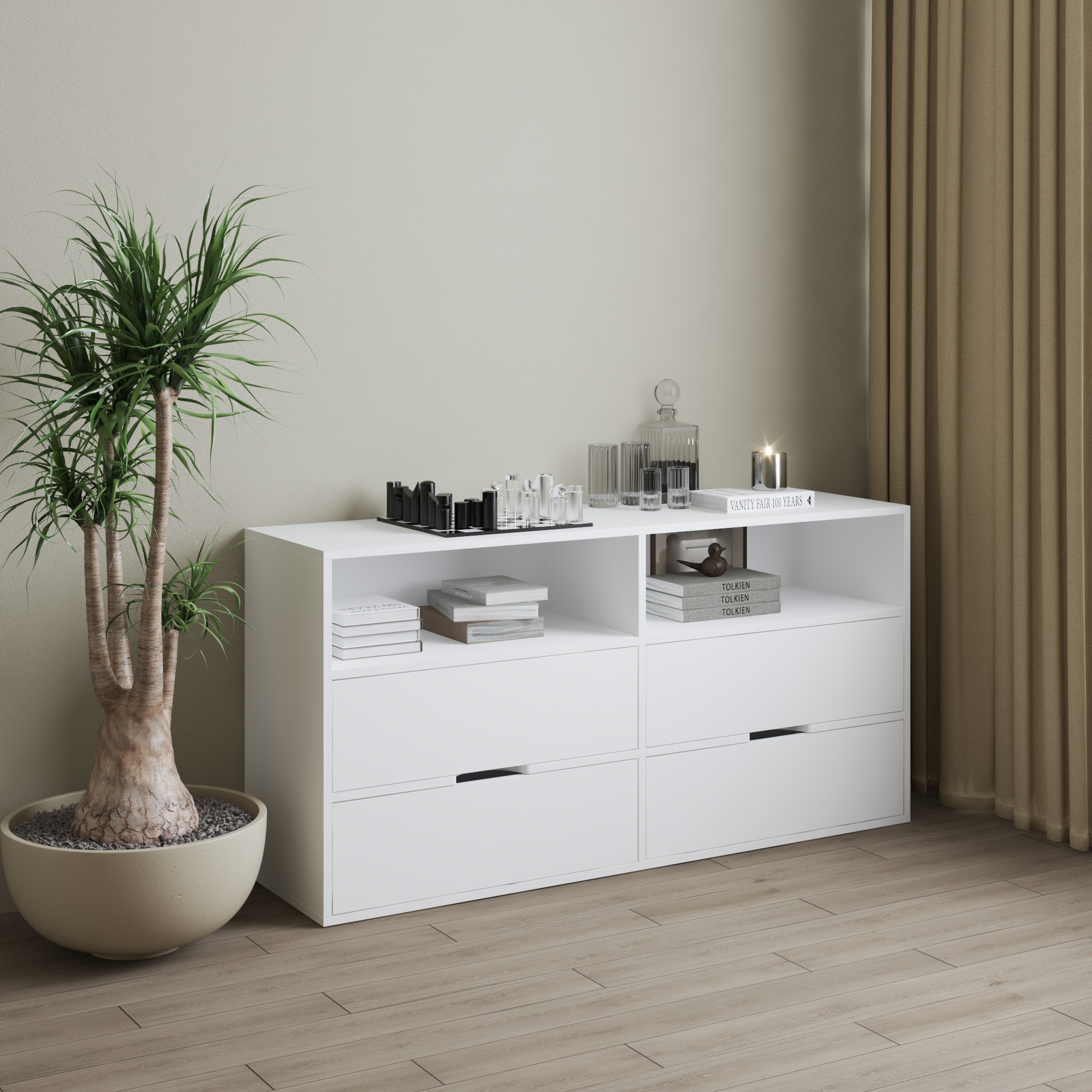 ✨HAPPY FURNITURE , Tủ lưu trữ 4 ngăn kéo - LAYLA , THK_330 , 140cm x 40cm x 70cm DxRxC