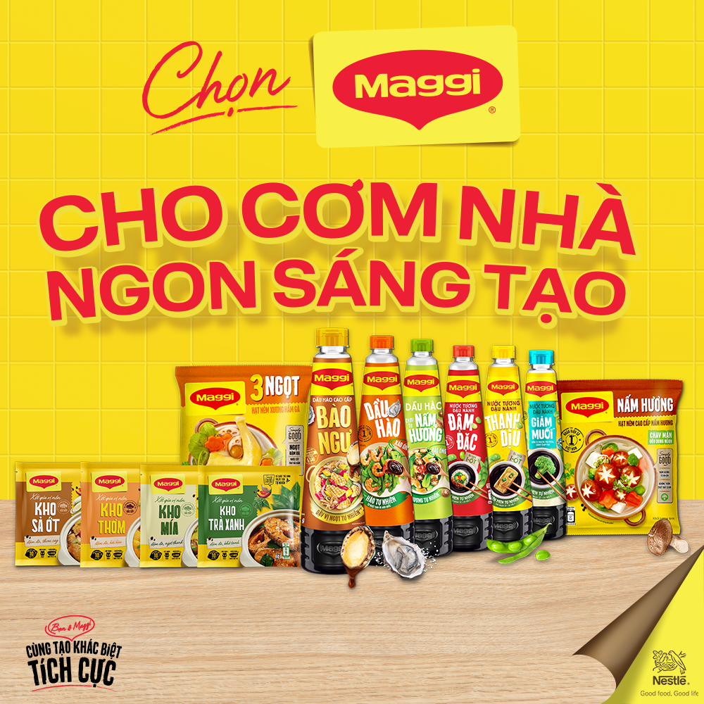 - Hạt nêm Maggi nấm hương cho món ăn vị ngọt thanh, ngon miệng.