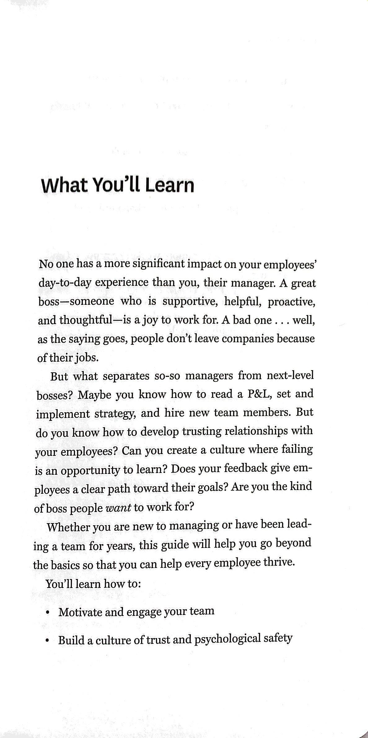 The HBR Guide to Being a Great Boss contains practical tips and advice to help you become a more well-rounded leader, one who sparks creativity, engagement, collaboration, and growth in your team. You'll learn how to:
