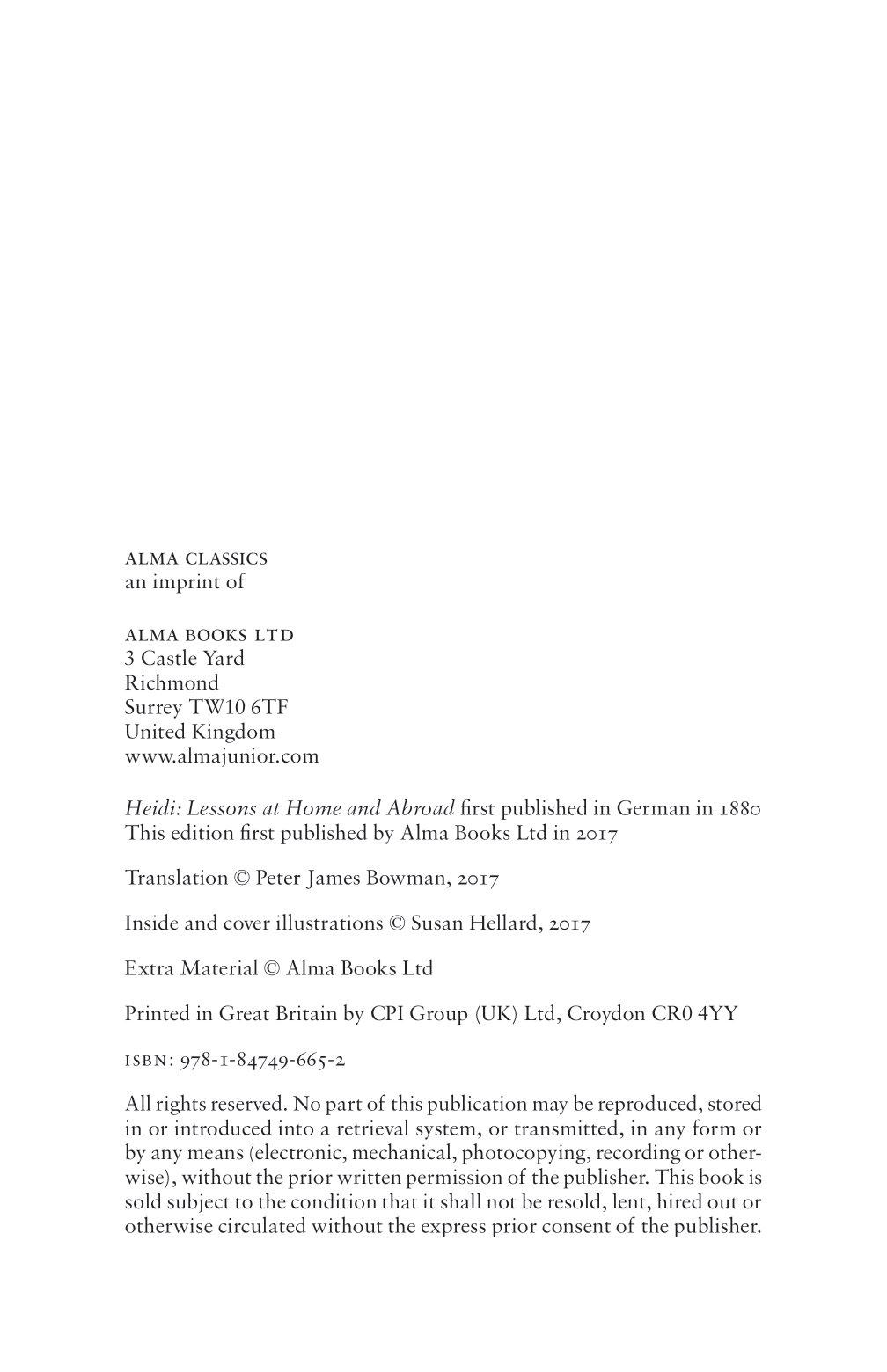 A timeless classic of Swiss literature that has inspired many adaptations and has captured the imaginations of children the world over, Heidi's Early Lessons and Travels is here presented in a brand-new, unabridged translation by James Bowman, with charming illustrations by Susan Hellard.