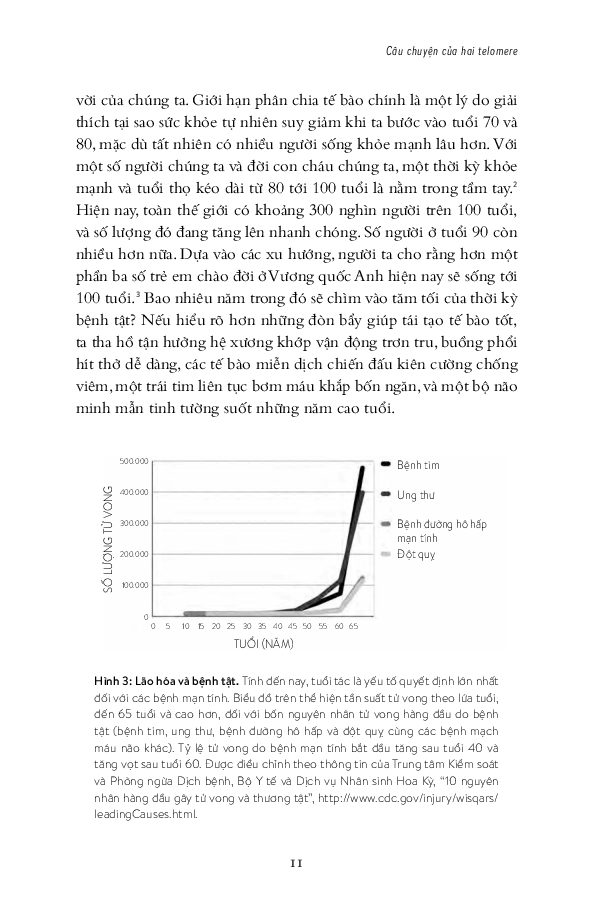 Bạn có tự hỏi tại sao có những người sáu mươi tuổi trông như bốn mươi tuổi và tại sao có người tuổi bốn mươi lại trông như người già sáu mươi? Mặc dù nhiều yếu tố góp phần gây ra lão hóa và bệnh tật, nhưng tiến sĩ Elizabeth Blackburn đã phát hiện một chất chỉ thị sinh học gọi là telomerase, loại enzyme bổ sung telomere, cấu trúc bảo vệ di sản di truyền của chúng ta. Nghiên cứu của tiến sĩ Blackburn và tiến sĩ Elissa Epel chỉ ra rằng độ dài và sức khỏe telomere của một người là cơ sở sinh học cho mối liên hệ giữa tâm trí và cơ thể đã được giả thuyết từ lâu. Họ và các nhà khoa học khác đã phát hiện chúng ta có thể thay đổi những thói quen hằng ngày để bảo vệ telomere và kéo dài số năm tháng sống khỏe mạnh, năng động và không bệnh tật.