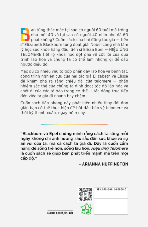 Hiệu ứng telomere sẽ khiến bạn đánh giá lại cách bạn sống cuộc đời mình hằng ngày. Đây là cuốn sách đầu tiên giải thích cách chúng ta già đi ở cấp độ tế bào và cho thấy chúng ta có thể thực hiện những thay đổi đơn giản để giữ nhiễm sắc thể và tế bào của chúng ta khỏe mạnh, cho phép chúng ta sống lâu hơn mà không bệnh tật và sống một cuộc đời chất lượng và giàu ý nghĩa.