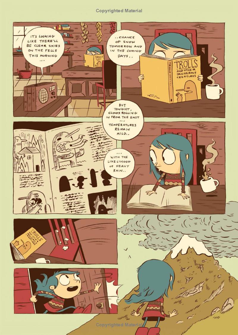 While on an expedition to illustrate the magical creatures of the mountains around her home, Hilda spots a mountain troll. As the blue-haired explorer sits and sketches, she slowly starts to nod off. By the time she wakes up, the troll has totally disappeared and, even worse, Hilda is lost in a snowstorm. On her way home, Hilda befriends a lonely wooden man, and narrowly avoids getting squashed by a lost giant.