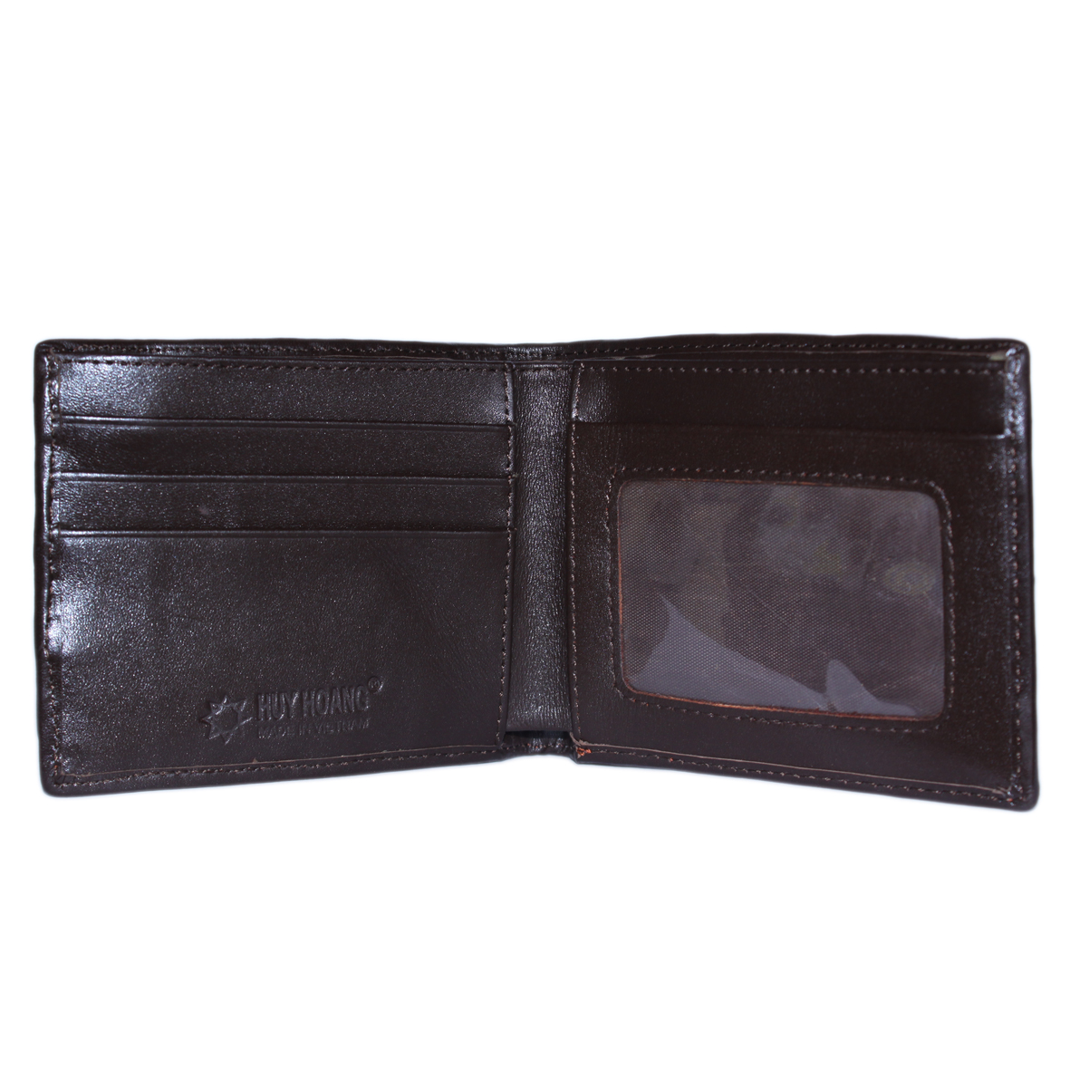 Ví/Bóp nam Huy Hoàng da bò vân cá sấu màu nâu 2112