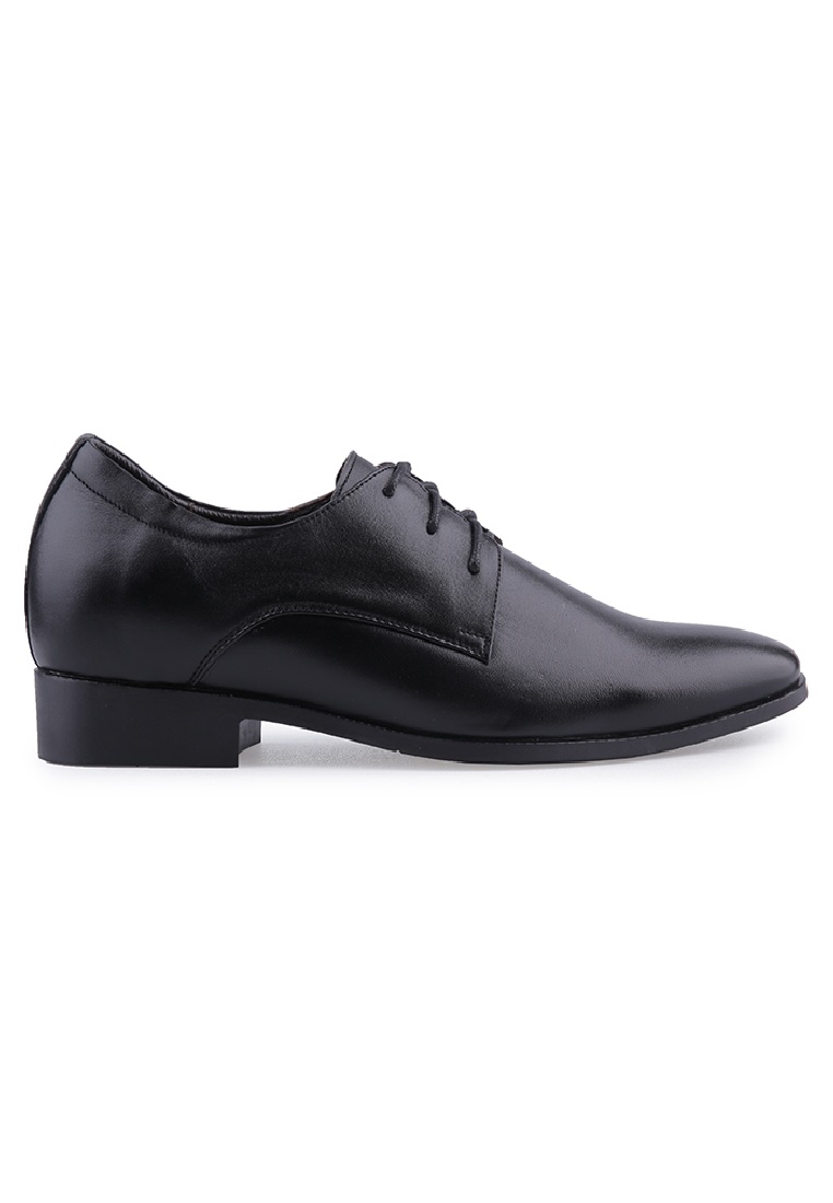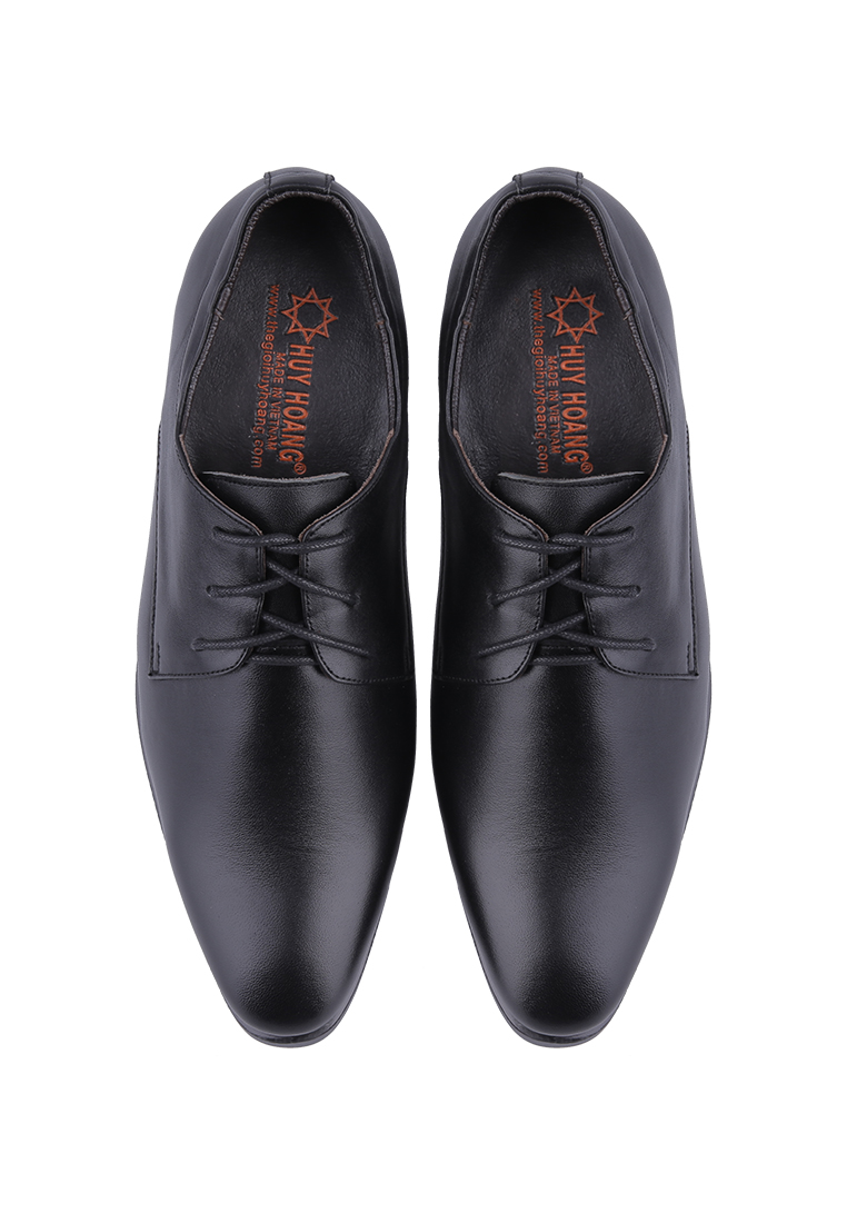 Giày tăng chiều cao Huy Hoàng da bò mũi nhọn cột dây màu đen 7189
