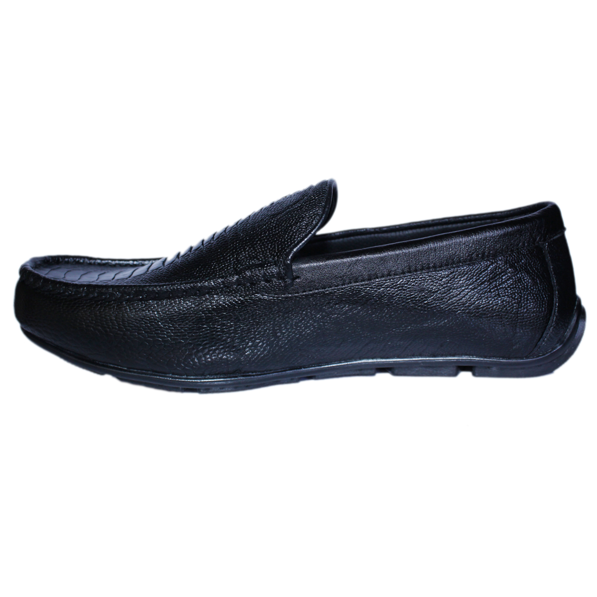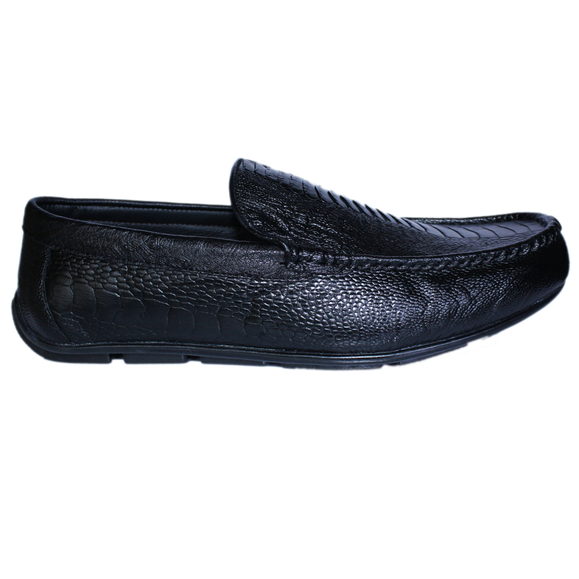 Giày Mọi Nam Da Đà Điểu Vây Chân Màu Đen