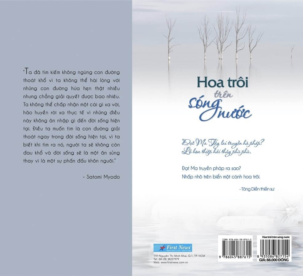 - Chỉ Quán Đả Tọa theo truyền thống Thiền Tào Động Và cuối cùng, bà đã kiến tánh – đạt được sự an lạc nội tại không thể diễn tả bằng lời. Một trải nghiệm khác hoàn toàn với các cảm giác màu nhiệm mà trước đó bà từng gặp trong quá trình hành trì Thần Đạo. Tác giả Nguyên Phong – Cầu nối giữa tâm linh phương Đông và độc giả hiện đại Tác phẩm Hoa Trôi Trên Sóng Nước do tác giả Nguyên Phong – dịch giả nổi tiếng với loạt sách tâm linh sâu sắc như Hành Trình Về Phương Đông, Ngọc Sáng Trong Hoa Sen, Trở Về Từ Cõi Sáng – chuyển ngữ và phóng tác từ nguyên tác "Michi" (tiếng Nhật). Tác giả Nguyên Phong (GS. John Vũ) đã đưa câu chuyện thiền của Satomi Myodo đến gần với độc giả Việt bằng một giọng văn mạch lạc, giản dị nhưng đầy chiều sâu nội tâm. Với cách biên dịch tài hoa, ông giúp người đọc cảm nhận rõ hơn hành trình đi từ sự vi tế của bản ngã đến sự tĩnh lặng tròn đầy của chân tâm. Vì sao bạn nên đọc Hoa Trôi Trên Sóng Nước?