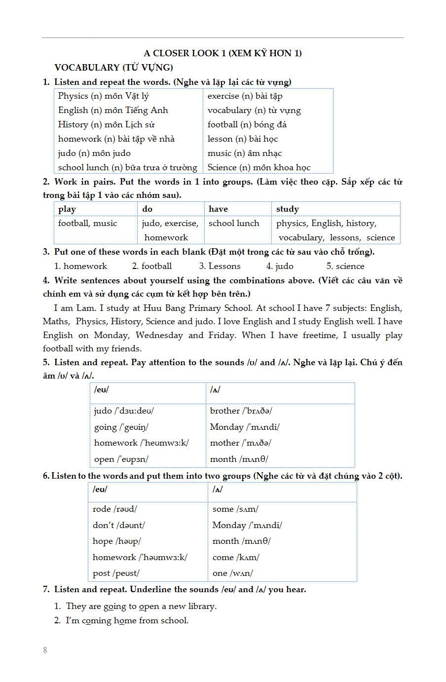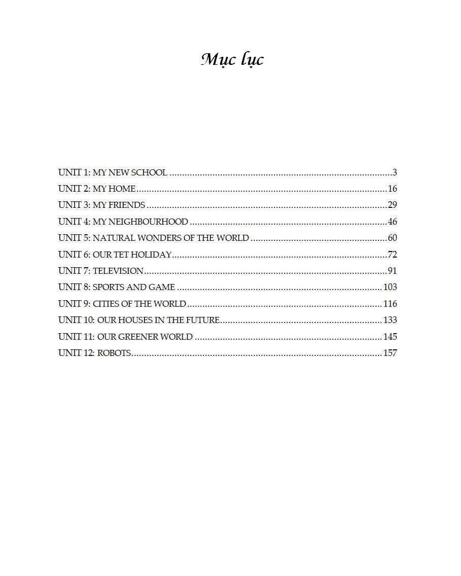 Cuốn sách được chia thành các đơn vị bài học. Mỗi đơn vị bài học đều bám sát chương trình mới của Bộ Giáo dục. Trong mỗi bài học chúng tôi đều có chia ra thành các đơn vị kiến thức như sau để học sinh dễ dàng tiếp thu.