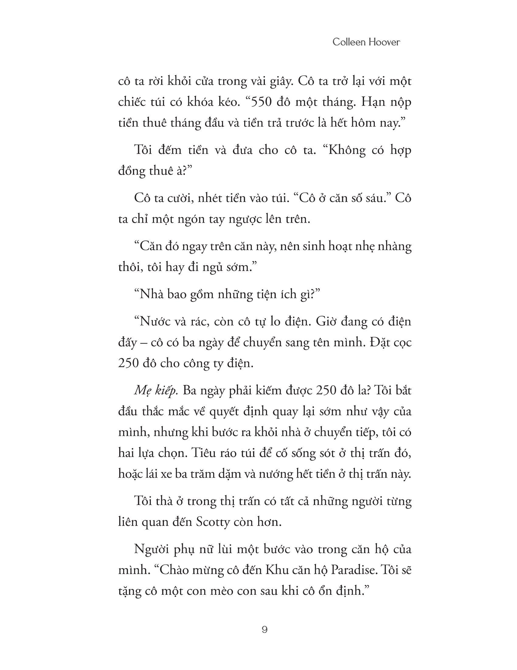 “Cuốn sách mới của Colleen Hoover sẽ xé nát rồi chữa lành trái tim bạn… Một tuyệt tác đầy cảm động về mất mát và hy vọng, nỗi hối hận và tha thứ, và rằng tình yêu có thể chữa lành mọi thứ.” ―POPSUGAR