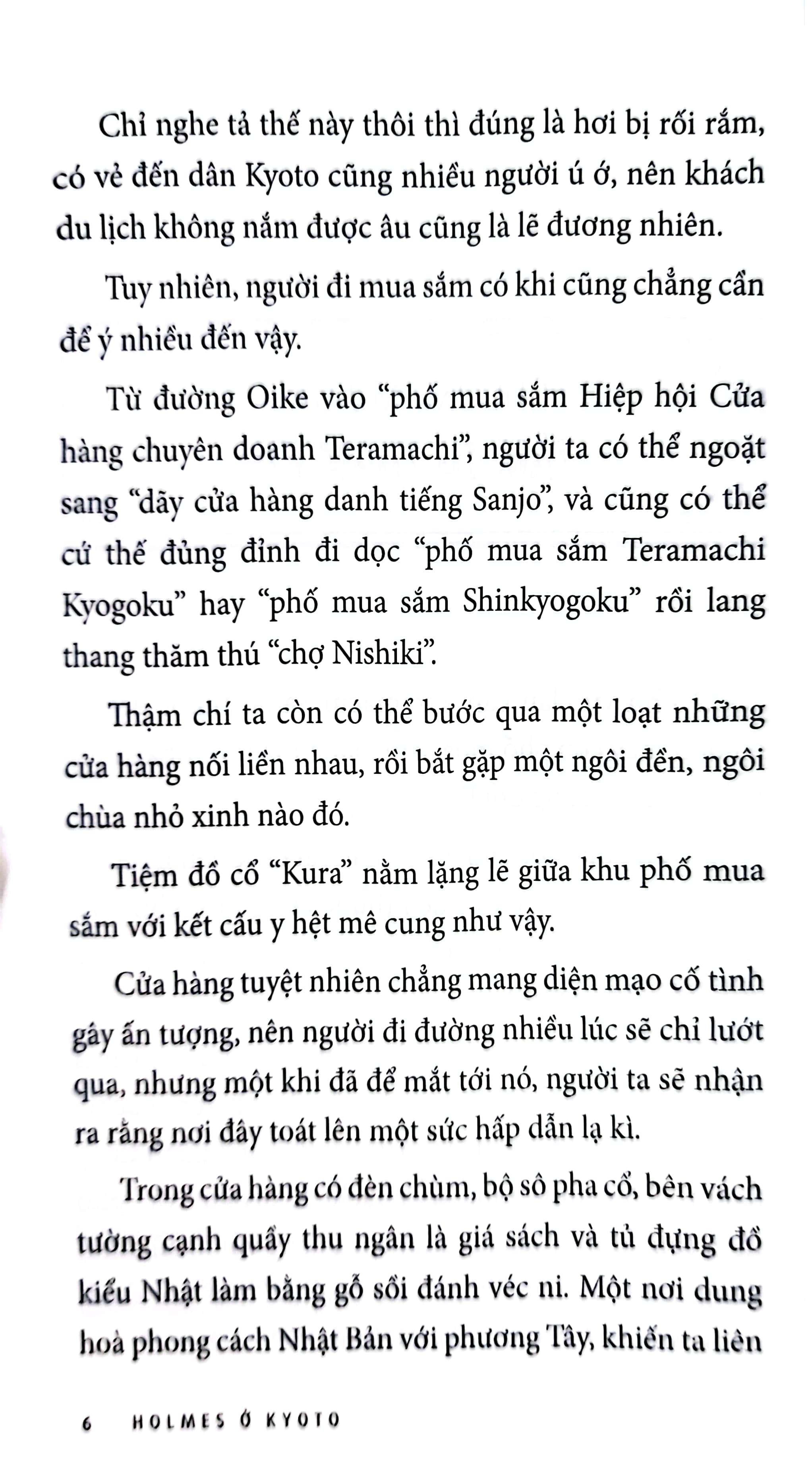 - Holmes ở Kyoto là bộ tiểu thuyết kì bí nhẹ nhàng cực kì nổi tiếng, không chỉ tạo cơ hội cho độc giả làm quen với những nét đẹp văn hoá của mảnh đất Kyoto mà còn giới thiệu về muôn vàn món cổ vật nổi tiếng ở khắp nơi trên thế giới. Và rồi, mỗi món cổ vật đều cất giữ câu chuyện của riêng mình.