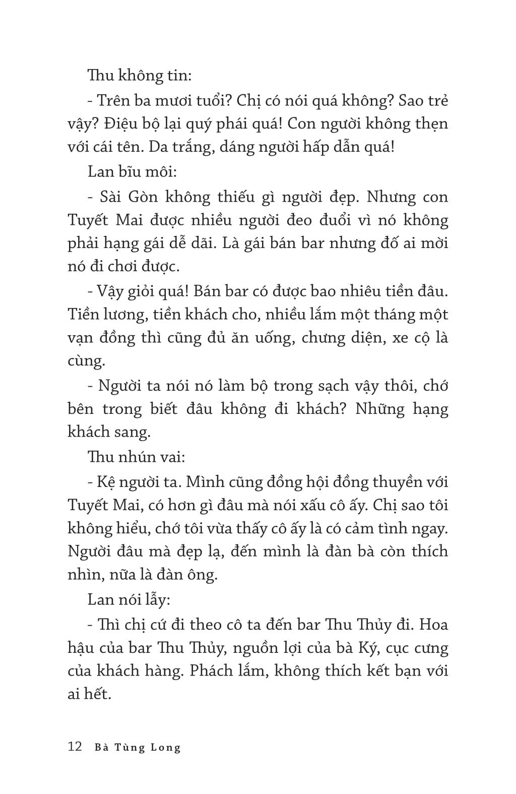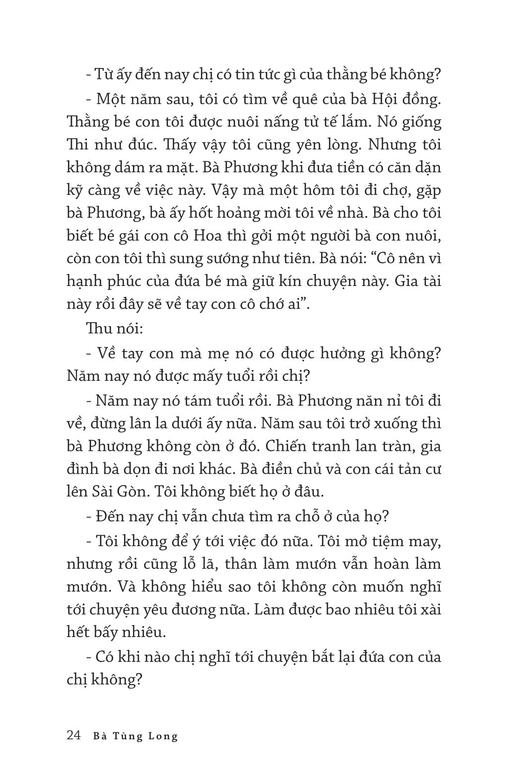 Bà Tùng Long tên thật là Lê Thị Bạch Vân. Nhà văn sinh năm 1915 này chuyên viết truyện tâm lý tình cảm với hàm ý giáo dục đạo đức trong gia đình, cổ vũ mọi người vươn lên, sống lý tưởng, thanh cao; Bà...