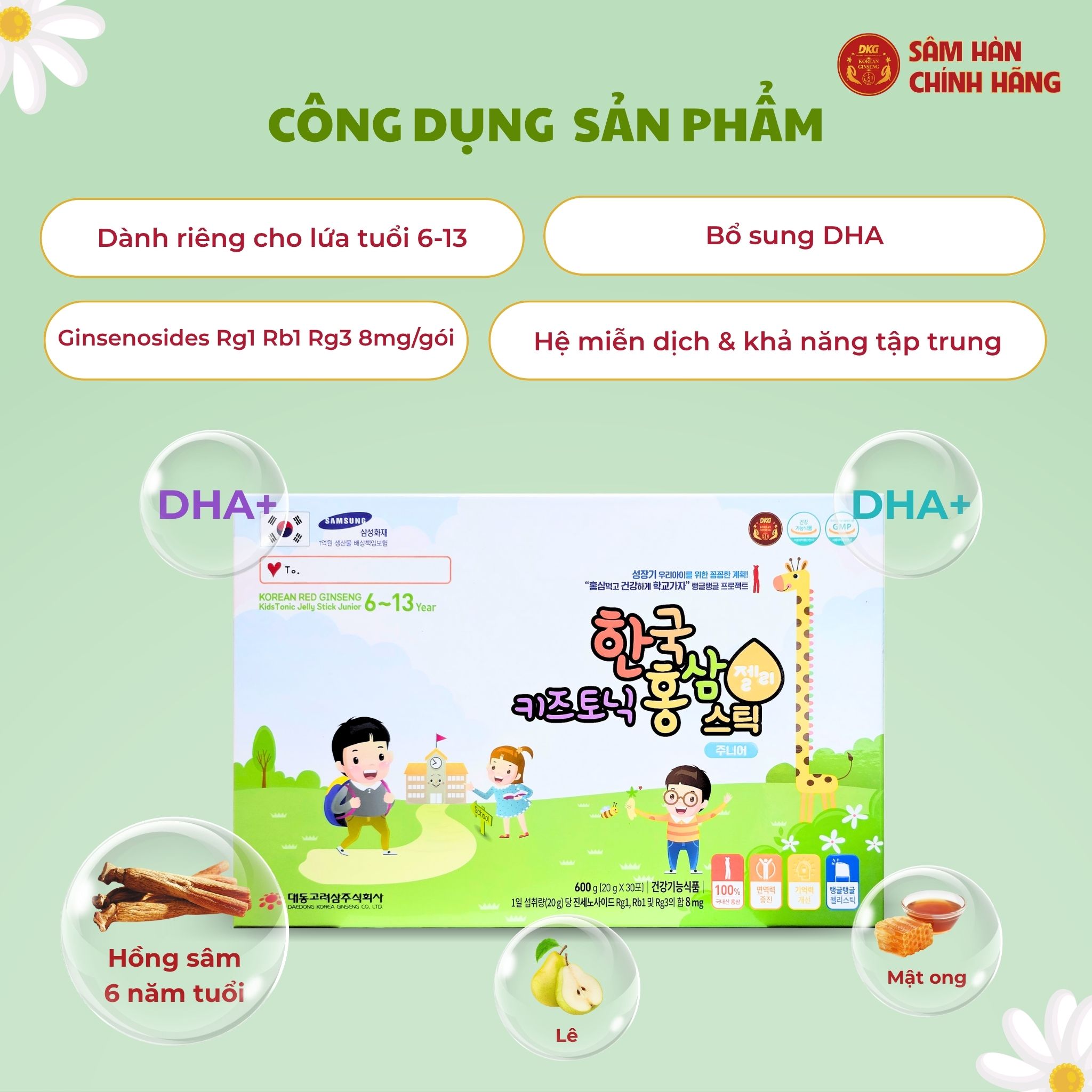 Hồng sâm trẻ em 6-13 tuổi Jelly DKG (thạch stick) - Bổ sung dinh dưỡng cho bé học tập, vận động