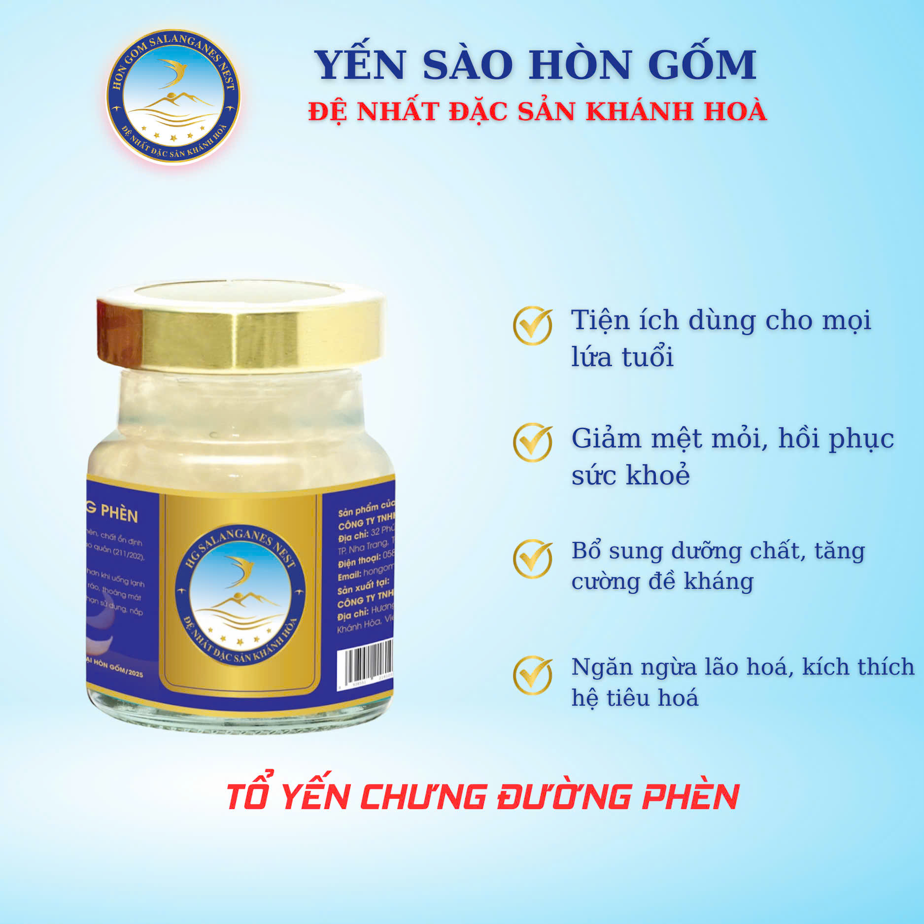 Nước Yến Sào Chưng Đường Phèn - Yến Sào Hòn Gốm Khánh Hòa - Thương Hiệu Top 10 Sao Vàng Thương Hiệu Quốc Gia 2024