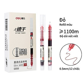 - Hộp 12 bút bi nước Deli S856, ngòi 0.5mm.