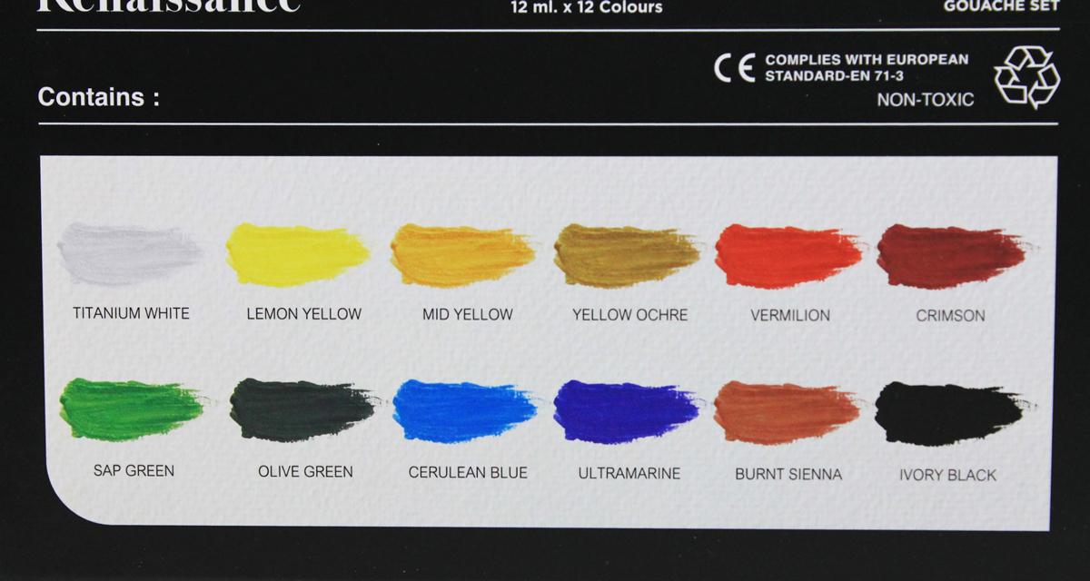 Hộp 12 Tuýp Màu Vẽ Gouache 12 Ml - Renaissance - Khác với màu nước tan và tạo sắc độ trong nước, màu gouache là màu dạng bột pha keo, có thể chồng nhiều lớp