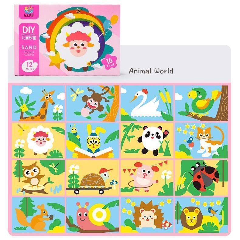 Hộp 16 Tranh Cát DIY 21x14cm An Toàn Cho Bé Kèm 12 Lọ Màu Cát - 10942