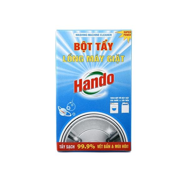 Thông tin sản phẩm Tên sản phẩm : Tẩy lồng máy giặt Hando Hướng dẫn sử dụng : Cho 2 đến 3 gói nhỏ bột vào lượng nước khoảng 1/6 thùng giặt, sau đó ngâm