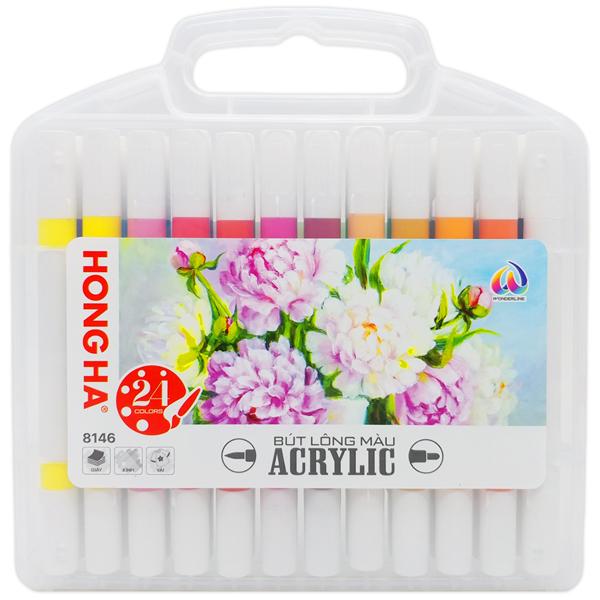 Mua tại TiktokHộp 24 Bút Lông Màu Acrylic 2 Đầu - Hồng Hà 8146 phù hợp cho mọi đối tượng từ học sinh đến người vẽ chuyên nghiệp.