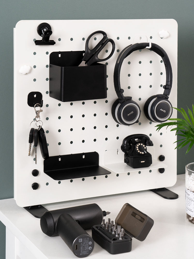 Hộp bút + khay đựng + kệ L ngắn + kệ L Dài + kệ tam giác Dola Home để vật dụng cần thiết - Phụ kiện bảng Pegboard