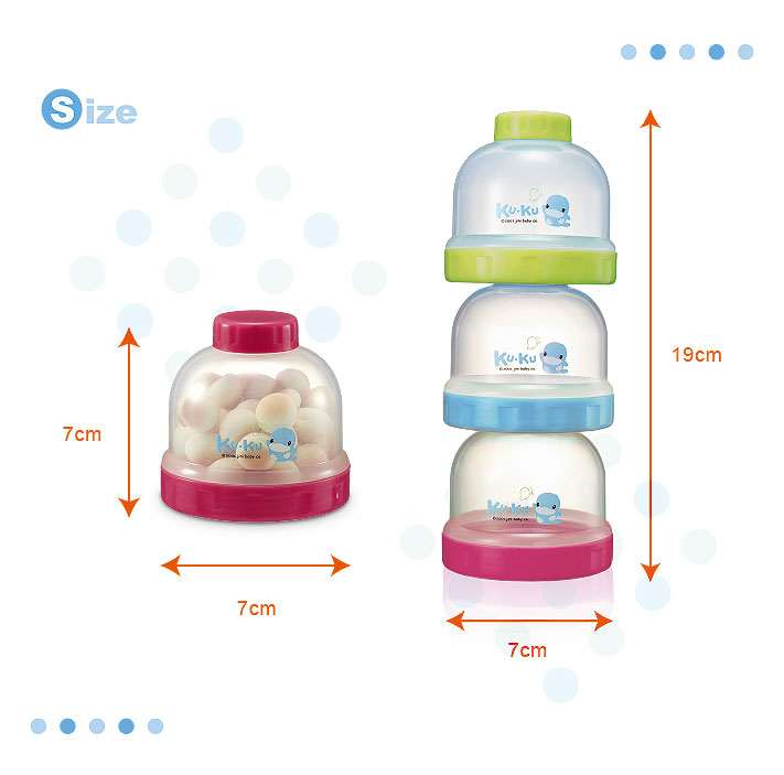 Hộp chia sữa 3 ngăn KUKU KU5465A có thiết kế độc lập, tiện lợi theo nhu cầu sử dụng, khiến bạn trải nghiệm niềm vui thú vị khi xếp chồng các ngăn lên nhau, thiết kế đầu trút hình phễu, giúp sữa bột đổ ra thuận lợi, nhanh chóng mà không bị đóng cặn lại. Khi không đựng sữa bột, có thể sử dụng như chiếc chén nhỏ hoặc hộp đựng, tăng sự tiện lợi khi đi ra ngoài.