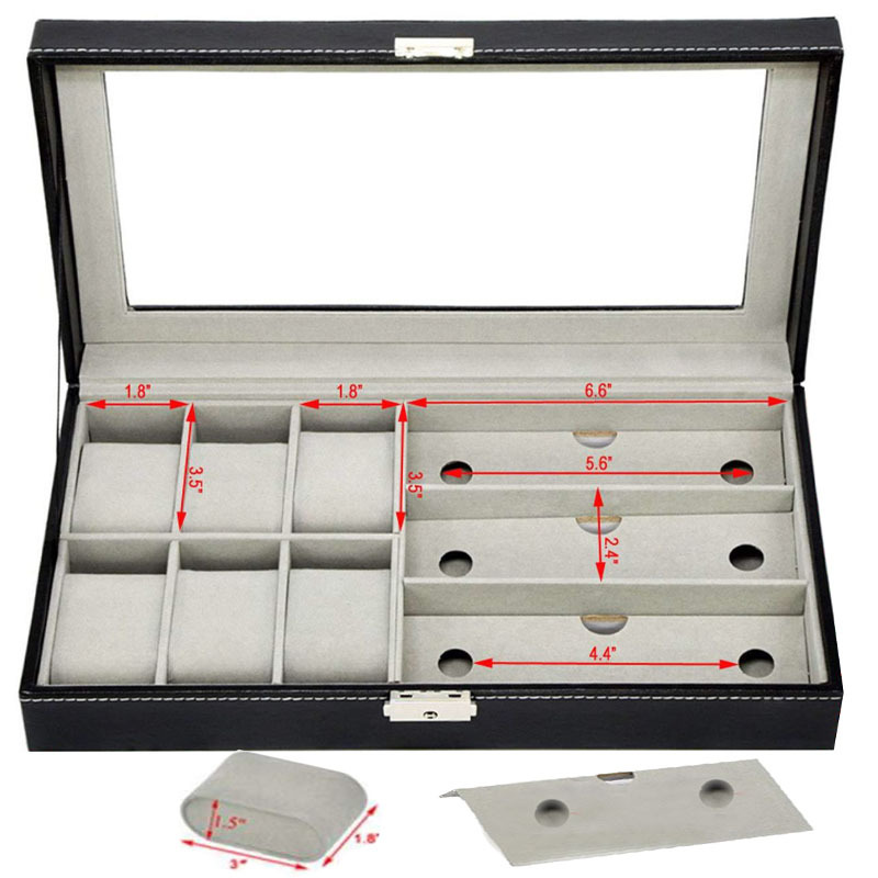 Hộp Đựng 6 Ngăn Đồng Hồ – 3 Ngăn Kính, hộp đựng đồng hồ đa năng - Hộp Đựng 6 Ngăn Đồng Hồ – 3 Ngăn Kính được thiết kế tinh gọn, sang trọng giúp