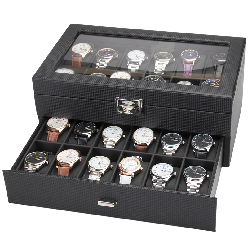 Hộp đựng đồng hồ 24 cái vỏ da carbon màu đen sang trọng #hopdungdongho #hopdongho #hộp #dongho